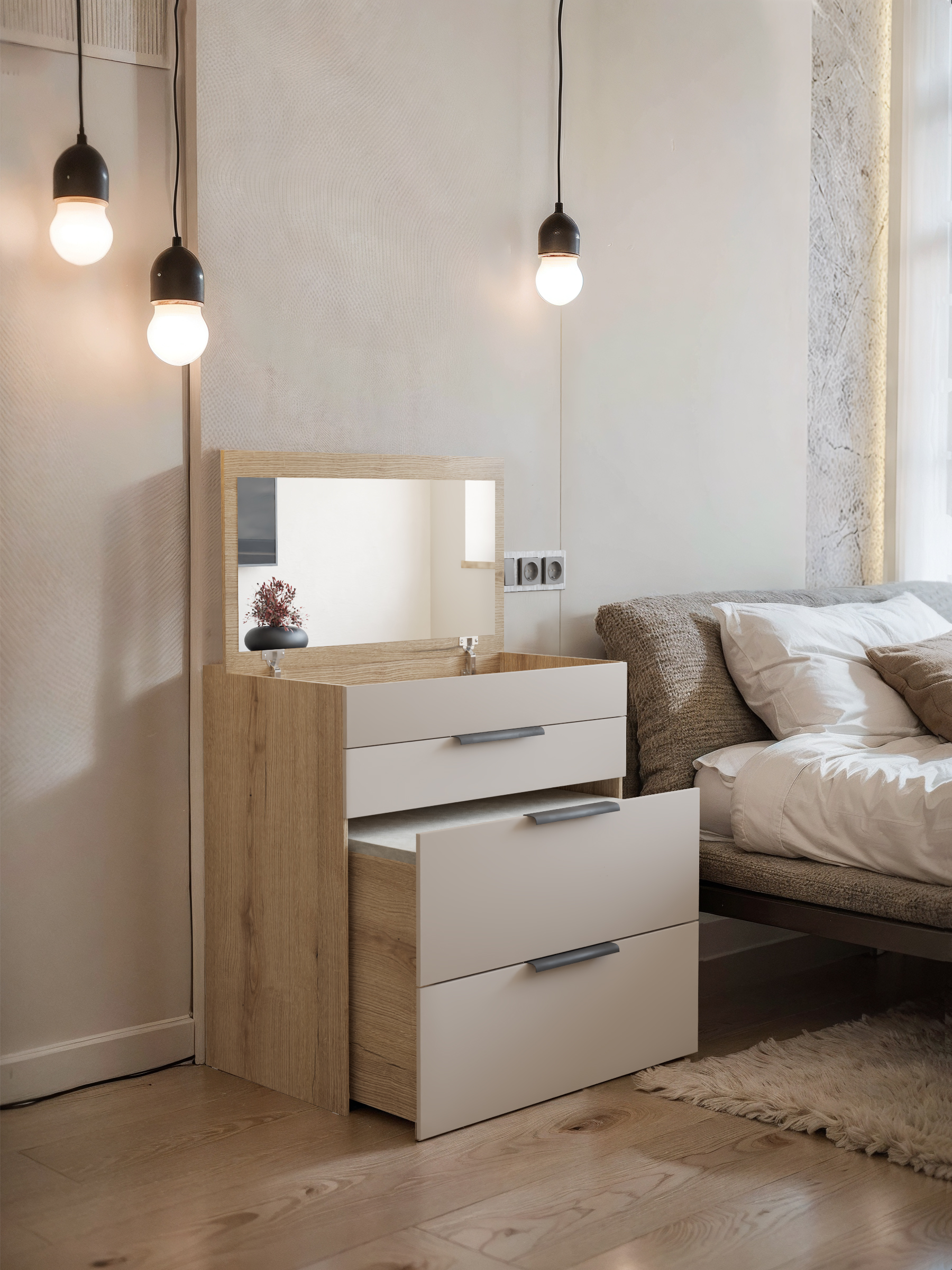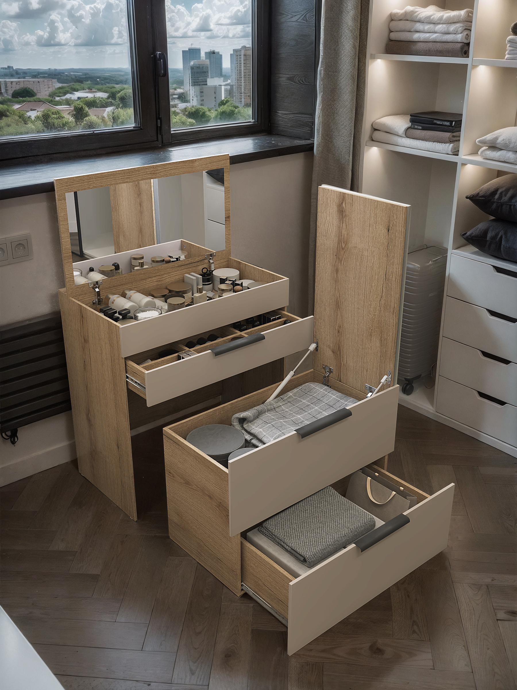 Туалетный столик-комод трансформер с зеркалом, Д_Гс_БЛ
